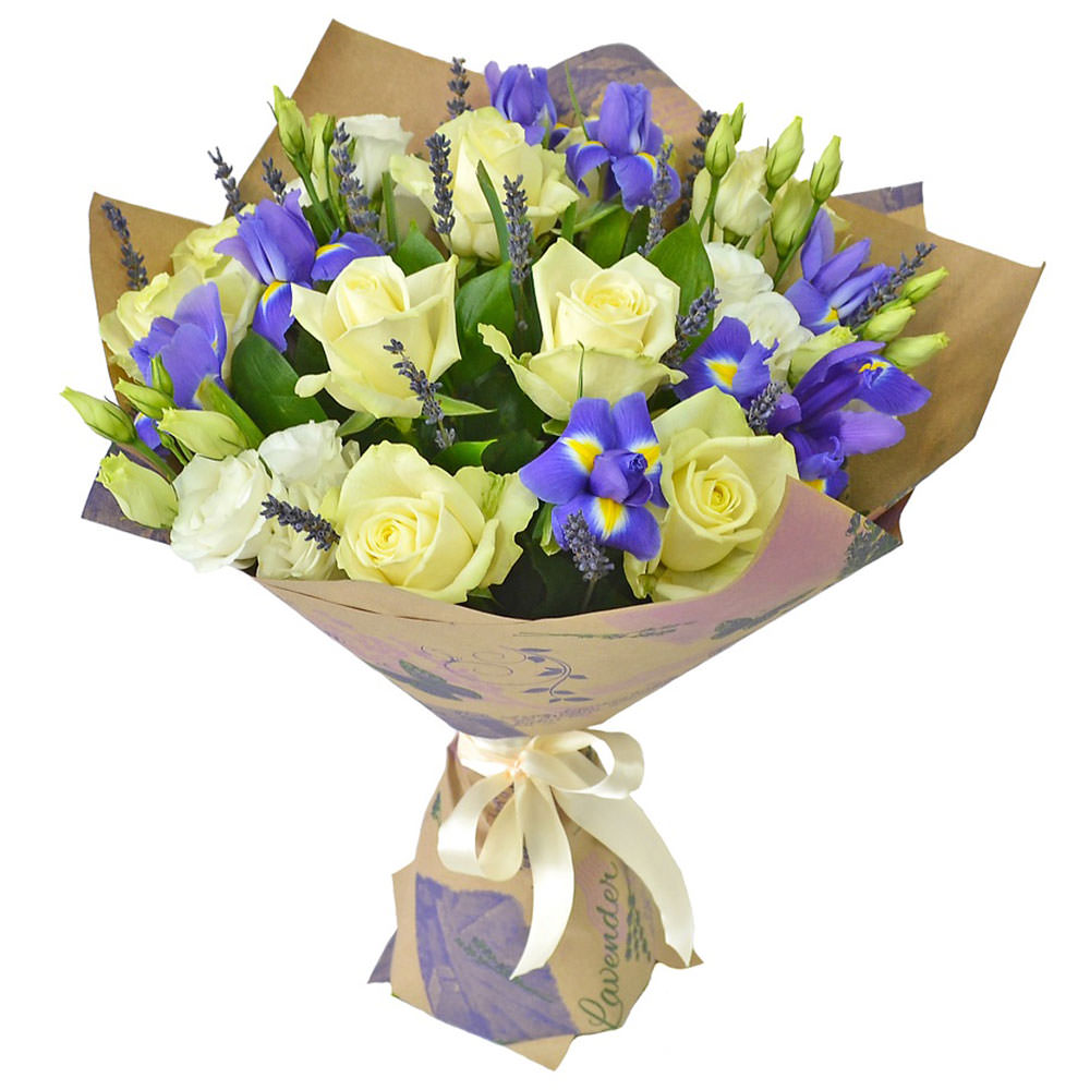 | Состав | Вереск, Ирисы, Розы, Эустомы |