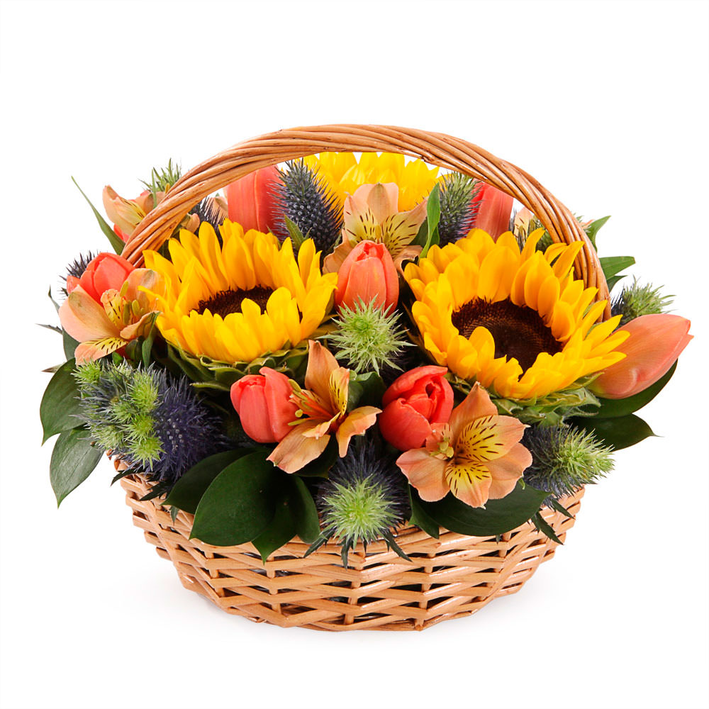 Цветы в корзинке «Солнечный день» с доставкой по г Мостовской: вы можете купить букет в интернет-салоне цветов «Флормания» по цене от 3190 руб.